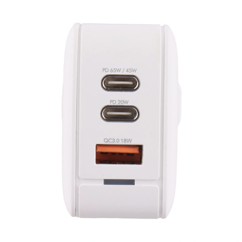 این دستگاه دارای ۳ پورت بوده که یک عدد آن USB و دو عدد TYPE-C با فناوری PD است که با درگاه USB میتواند جریان برق را با ولتاژهای 5V/3A – 9V/2A – 12V/1.6A انتقال دهد که به حفظ ایمنی دستگاه کمک میکند این میزان ولتاژ برای بسیاری از لپتاپها و گوشیها مانند Samsung Galaxy S21 مناسب است. و همچنین با درگاه TYPE-C میتواند جریان برق را با ولتاژهای 5V/3A – 9V/2.22A- 12V/1.6A و12V/3A.9V/3A.5V/3A.15V/3A.20V/3.25A که با گوشیهای بسیاری مانند Xiaomi mi 9 تطبیق دارد. از طریق این درگاه تایپ سی امکان انتقال جریان برق ( PD) با ولتاژها و جریانهای مختلف به دستگاههای متفاوت وجود دارد. باعث میشود دستگاه خود را با بهینهترین شرایط شارژ کنید. در مجموع شارژر دیواری سوپر فست با خروجی ۶۵وات میتواند همزمان دو دستگاه شما را با سرعت بیشتری شارژ کند. استفاده از تنظیمات مناسب جریان برق به حفظ عمر باتری دستگاهها کمک میکند.
