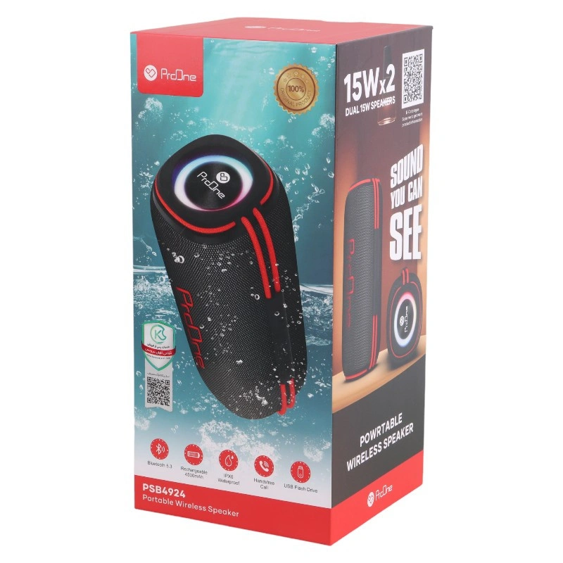 در دنیای امروز گوش دادن به موسیقی تقریباً در همه مکانها رایج شده است. چه در مراسمهای عزا و چه در مراسمهای شادی. غیر از منازل شخصی در جلسات اداری و مسافرت و… نیز این مورد صدق میکند. اسپیکر از جمله این امکانات است که در موارد ذکر شده کاربری دارد. اسپیکر بلوتوثی قابل حمل پرووان مدل PSB4924 محصولی دیگر از شرکت پرووان است که از پرطرفدارترین و پرفروشترین محصولات موجود در بازار است. این اسپیکر باتری ۴۵۰۰ میلی آمپری دارد که با توجه به باتری قدرتمندی که دارد میتوانید تا ۱۰ ساعت با آن موسیقی گوش دهید( البته با صدای متوسط). همچنین توان این را دارد که تا ۲۵ ساعت در حالت استندبای قرار بگیرد. این اسپیکر به وسیله USB، کارتهای حافظه، AUX و بلوتوث 5.3 به دستگاههای دیگر متصل میشود. از دیگر قابلیتهای این دستگاه میتوان به این مورد اشاره کرد که چون این اسپیکر از فناوری TWS استفاده میکند شما میتوانید به دو دستگاه به صورت همزمان متصل کنید و از آن خروجی صدای استریوی واقعی با تفکیک صدای Right و Left داشته باشید.